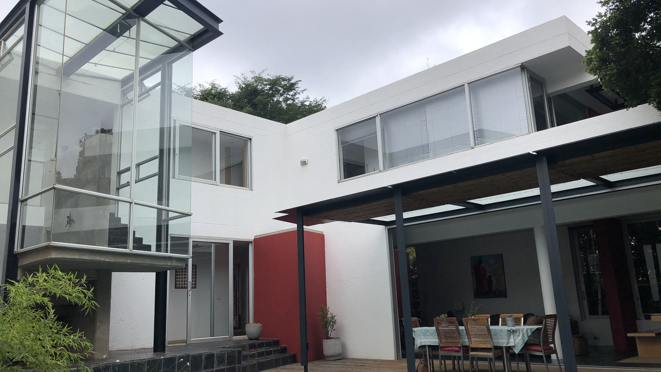 Well-respected architect, Derick de Bruyn, designed this modern family house in Centurion golf estate in 1996. With time the client's needs adapted and their way of using the spaces changed. The patio and lounge area needed alterations and modification. With an unorthodox approach, we transformed the previously lesser-used space into a space that is now integral to the rest of the home. A steel canopy floats over the patio and is connected to the existing building with a glass roof. Special attention was given to the detailing and assembly of the structure. A massive opening was proposed to turn the living area and the patio into one space when openend. The sliding doors were designed to slide away completely into a free-standing sliding door magazine.